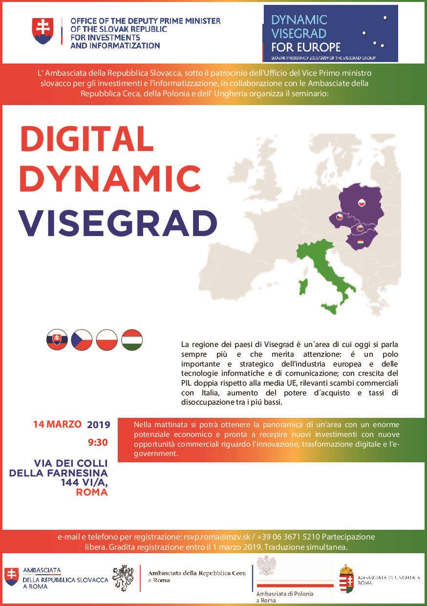In occasione della presidenza slovacca, l'Ambasciata della Repubblica Slovacca di Roma ospita il 14 marzo il seminario "Digital Dynamic Visegrad".